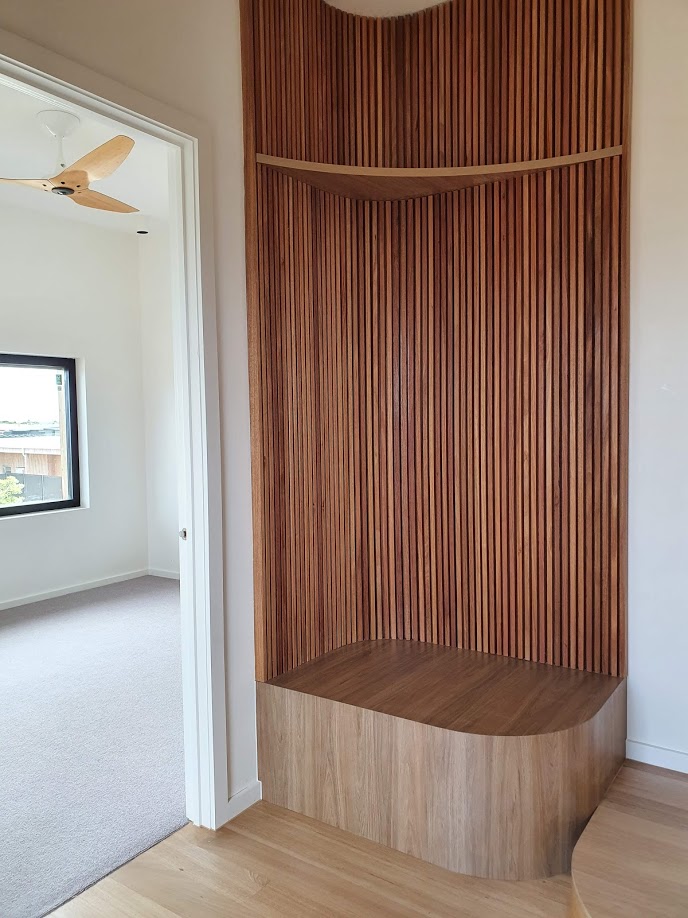| Cladding | Radial-sawn silver-top ash from Radial Timber Sales. BAL 29. Class 2 durability. |