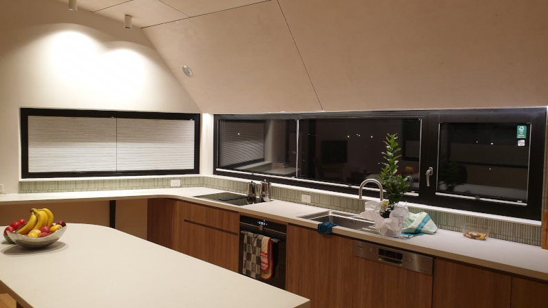 | Exterior | Motorised zip blinds fitted into façade over east (sliding door and one window) and west (one window). Zipner units provided by Logikhaus |
